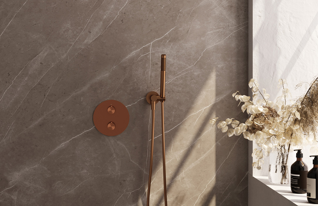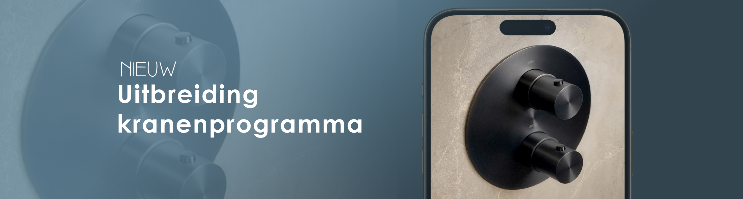 Hij was er al met een rechthoekige plaat, maar is nu ook verkrijgbaar met een ronde afdekplaat. De ronde vorm geeft de inbouwthermostaat een verfijnde en luxe uitstraling en is daarmee een stijlvolle toevoeging aan iedere badkamer.